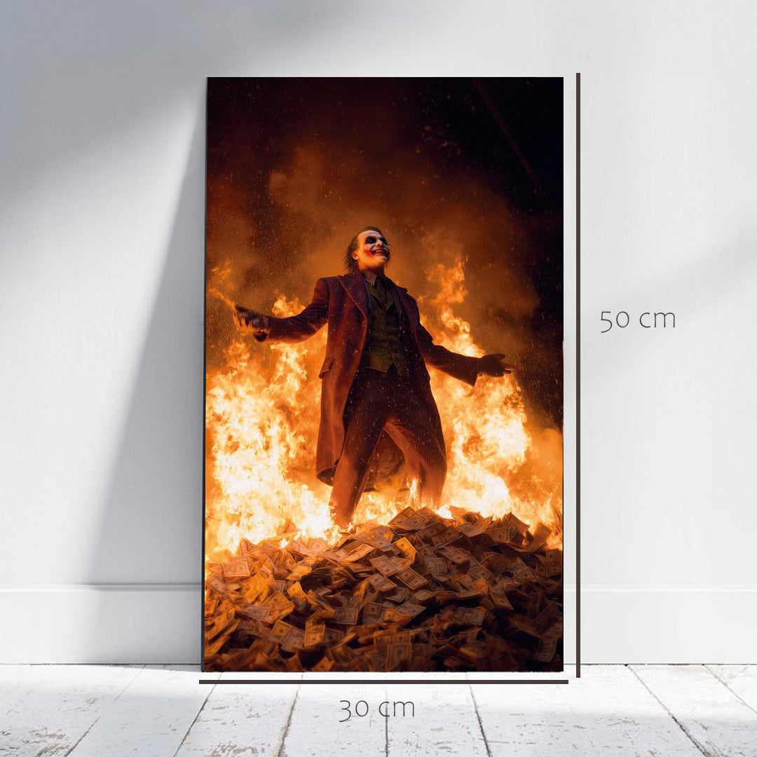 Atrévete a darle un toque único y provocador a tu espacio con este cuadro del Joker, una de las representaciones más icónicas del caos y la anarquía. Con un diseño lleno de fuerza, fuego y dramatismo, es perfecto para quienes buscan escapar de lo convencional y añadir un estilo audaz y llamativo a su decoración.